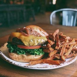 Great American western bar type environment. Service was great from the host to the server. Food was good too. The burger was cooked perfectly as ordered. The best ordered dish was the loaded baked potato which was full of deliciousness with very generous size. The salmon dish was also fine but with more conservative size. Only because some consider more healthy options doesn't mean that they eat less! I like to try Mac & cheese everywhere and this was big enough portion but nothing special. In general, two thumbs up! Definitely recommend this place.